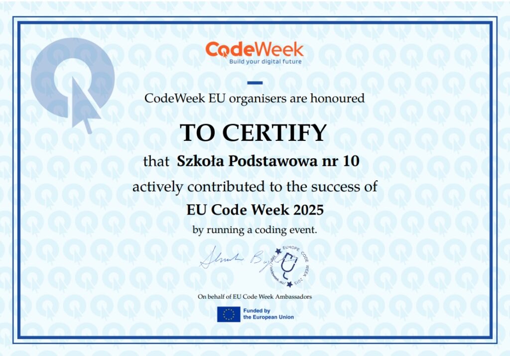 Mamy to! Nasza placówka otrzymała oficjalny certyfikat za udział w tegorocznej edycji EU Code Week!