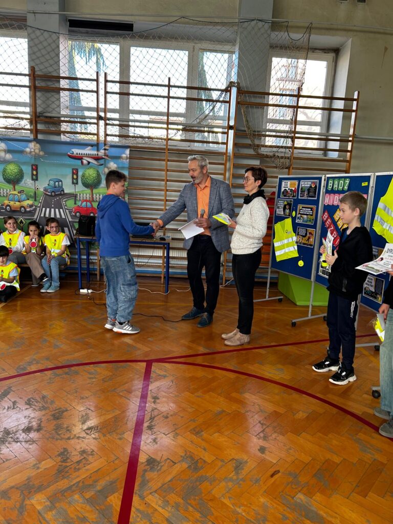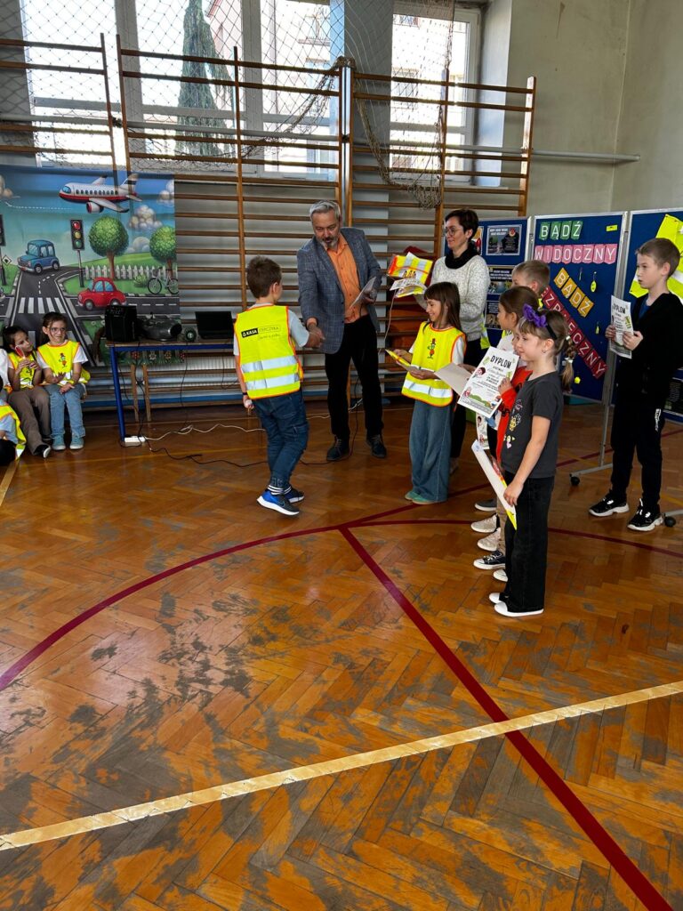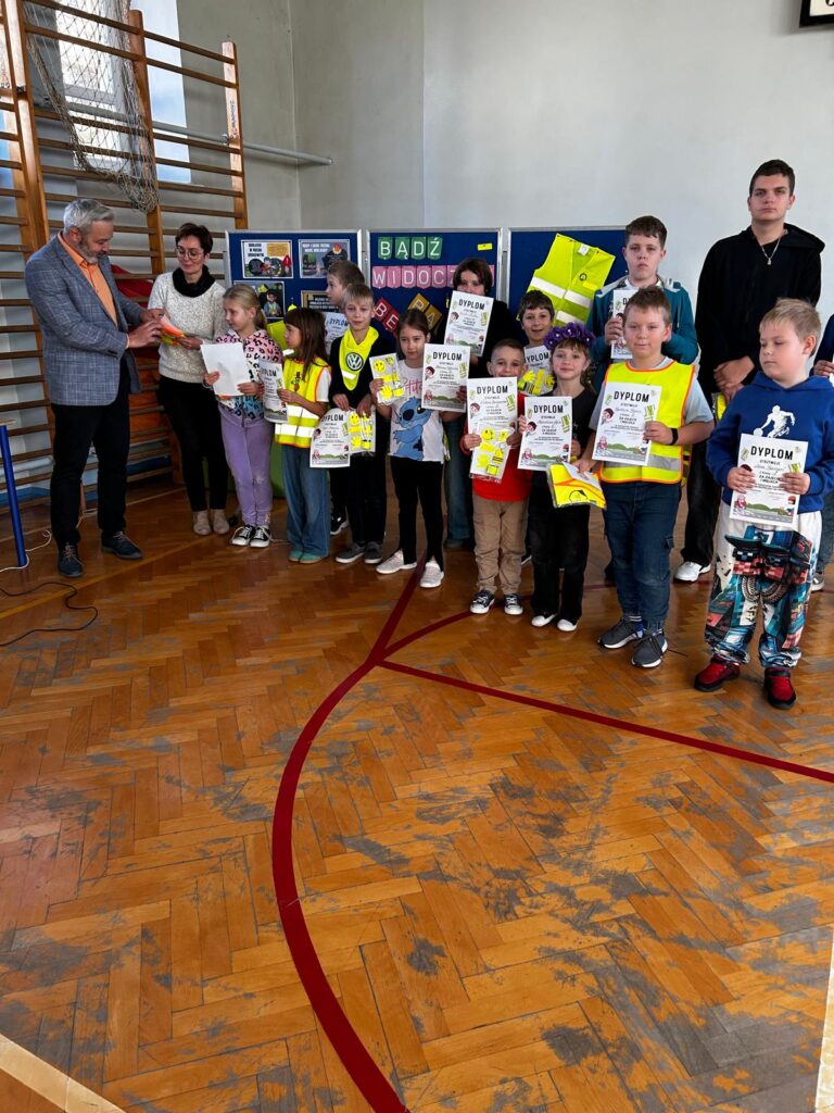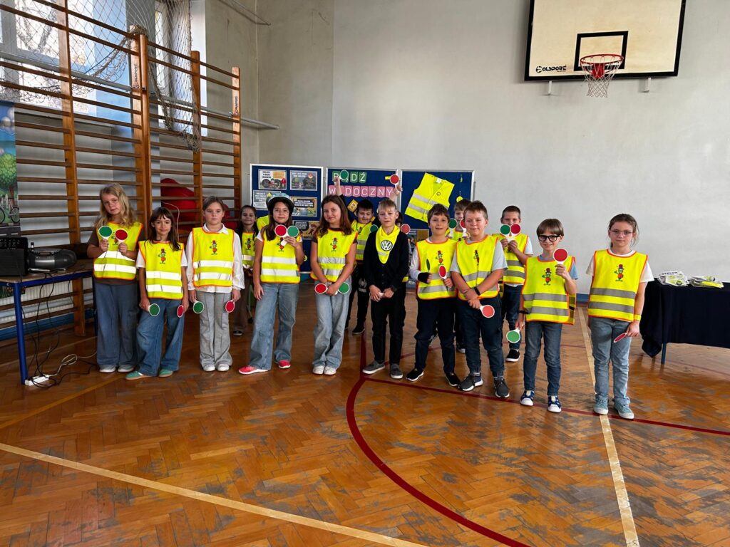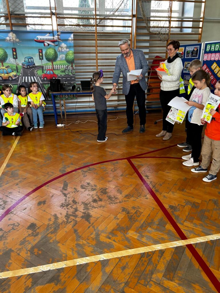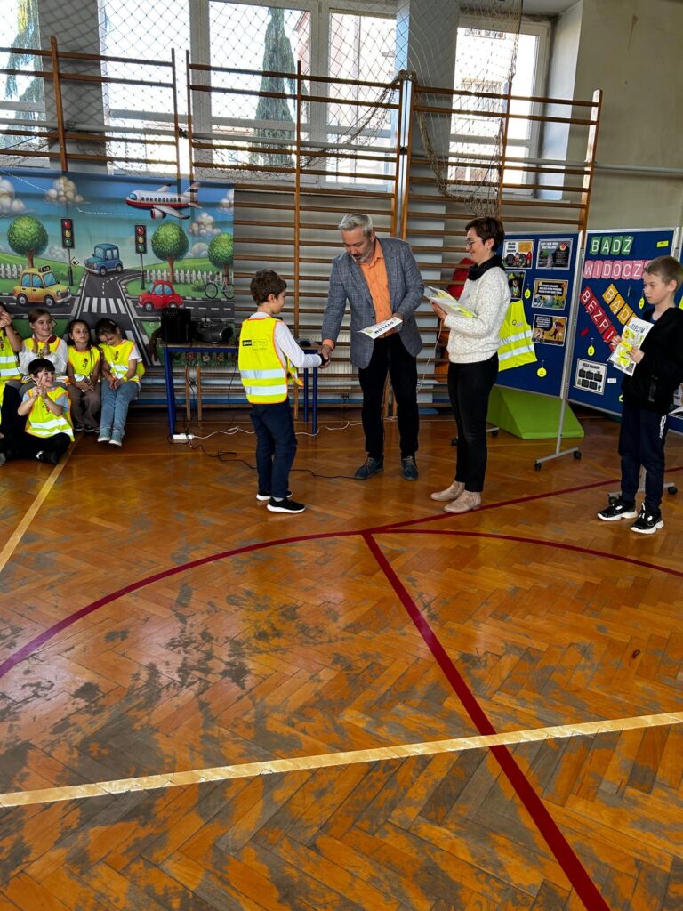 Na zakończenie przedstawiciele każdej klasy otrzymali odblaski, które przekazali swoim koleżankom i kolegom, aby jeszcze lepiej zadbać o swoje bezpieczeństwo po zmroku.