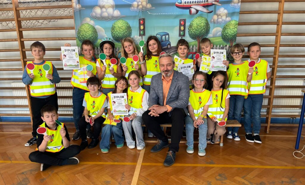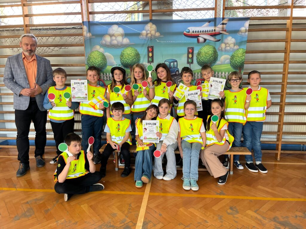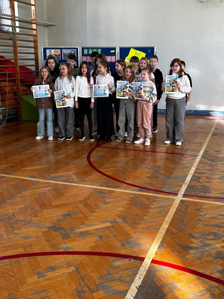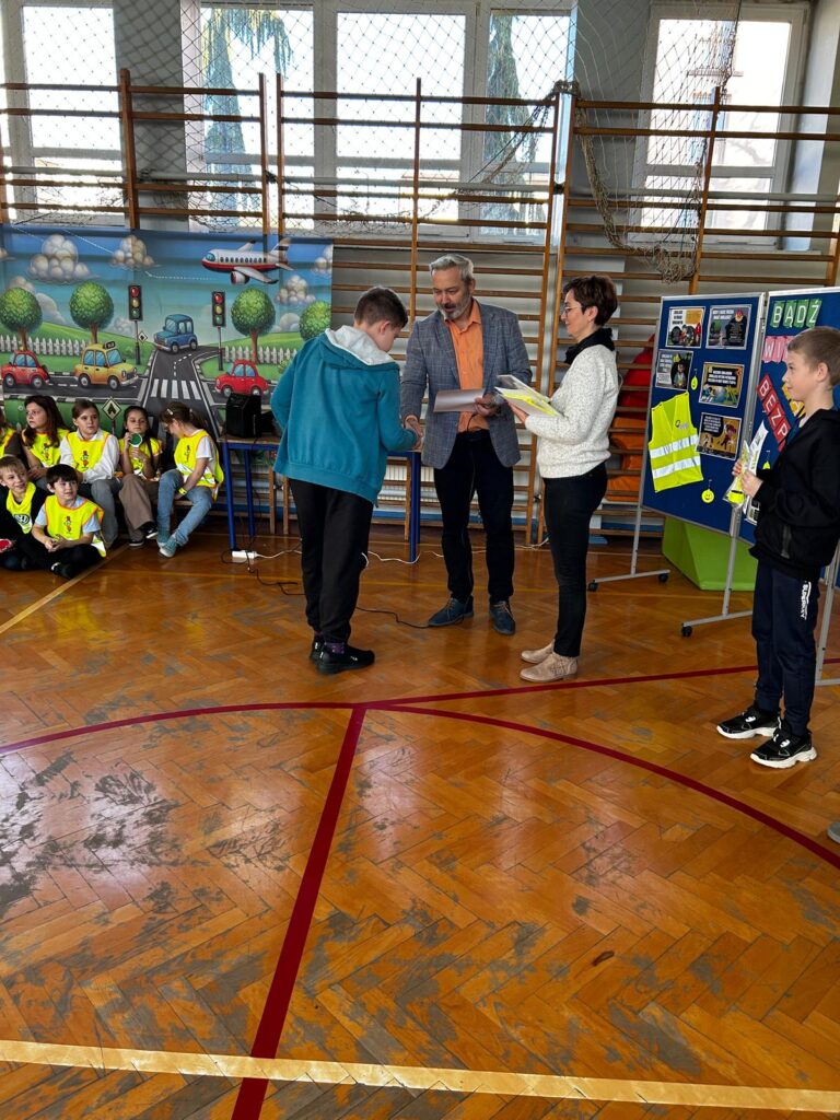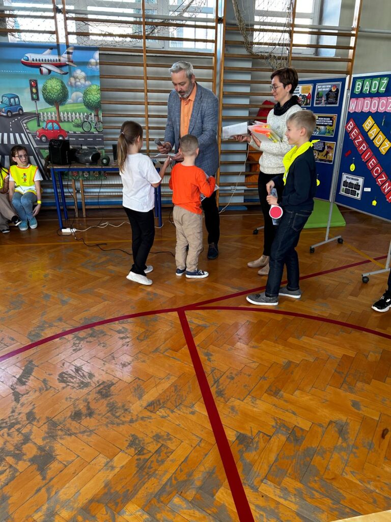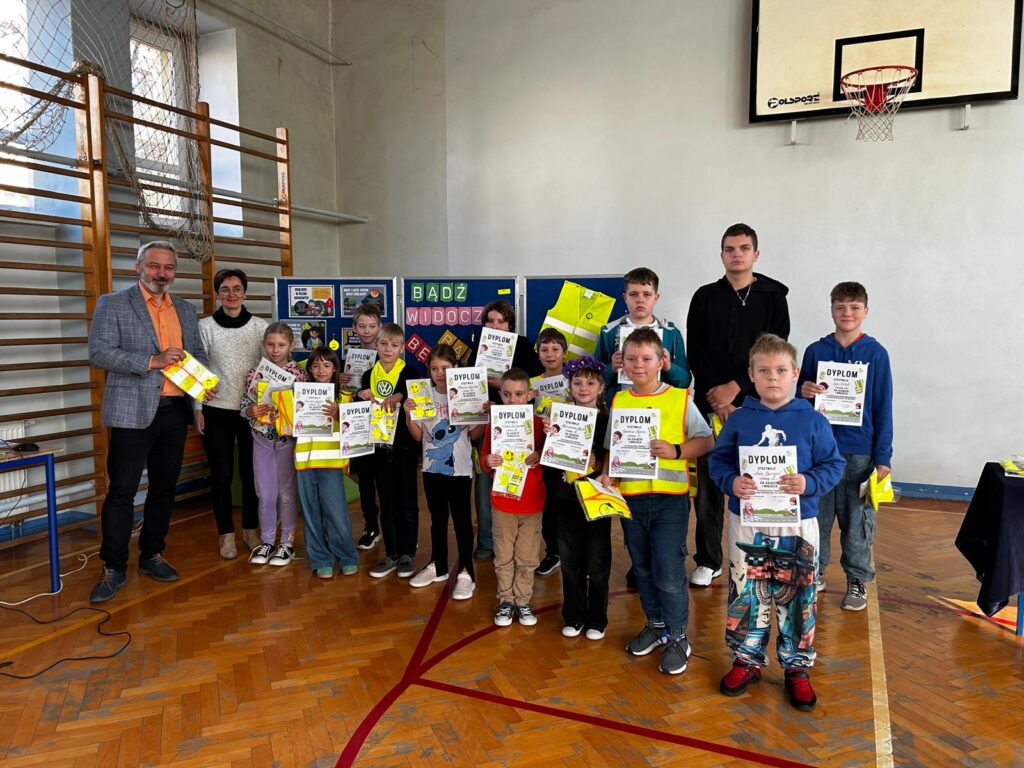 Na zakończenie przedstawiciele każdej klasy otrzymali odblaski, które przekazali swoim koleżankom i kolegom, aby jeszcze lepiej zadbać o swoje bezpieczeństwo po zmroku.