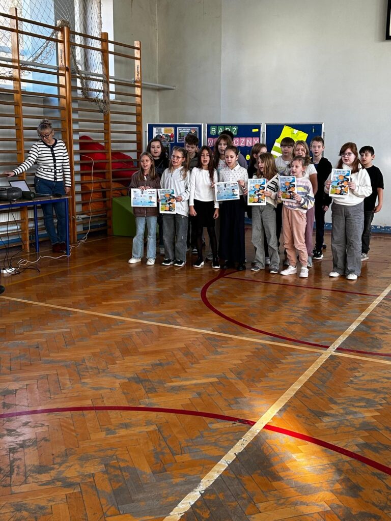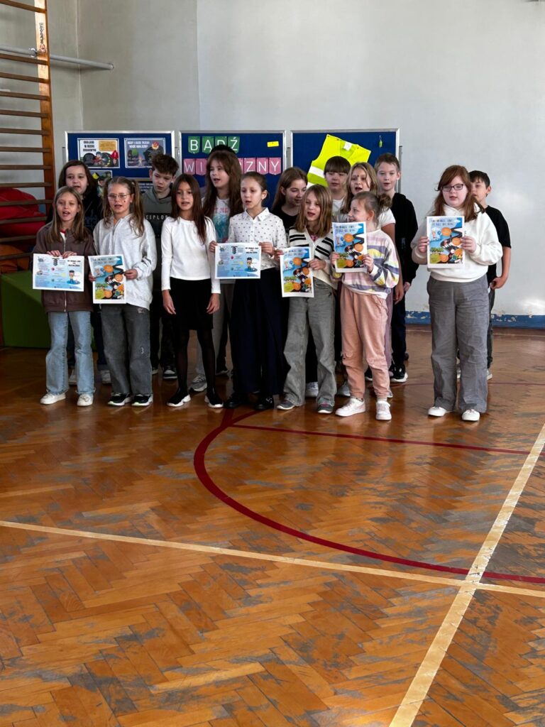 Z kolei dzieci z klasy 4 zaprezentowały piosenkę o bezpieczeństwie, którą samodzielnie napisały i skomponowały – brawo za kreatywność!