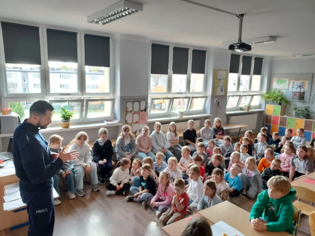 W ramach realizacji projektu „Odblaskowa Szkoła” odbyło się spotkanie uczniów z funkcjonariuszem Policji.