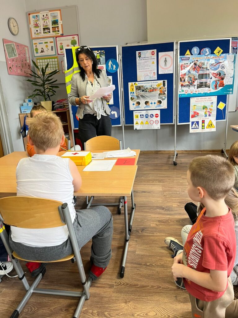 Uczestnicy odpowiadali również na pytania dotyczące odblasków i zasad bezpiecznego przechodzenia przez jezdnię.