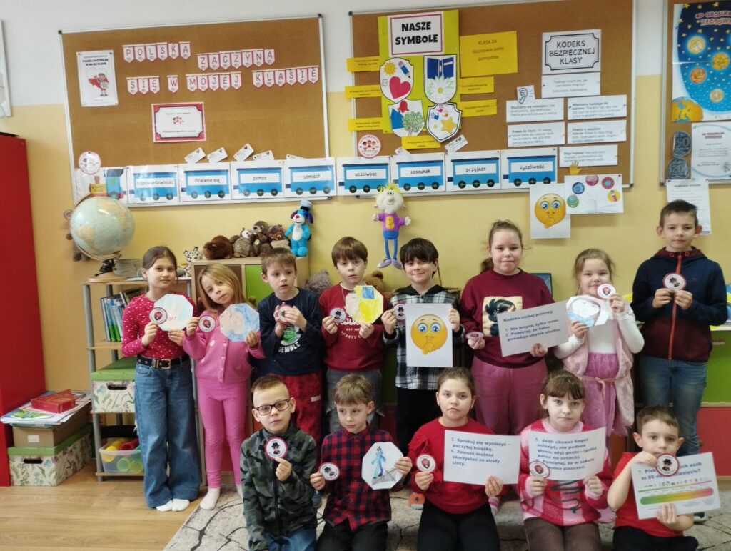 W ramach projektu uczniowie uczą się krok po kroku jak budować zgrany zespół klasowy, dbać o bezpieczeństwo i dobro wspólne. Poznają społeczność lokalną oraz symbole, tradycje i historię Polski. Postawy obywatelskie, patriotyzm i poczucie wspólnoty kształtują się od najmłodszych lat – w codziennych relacjach, wzajemnej pomocy, w trosce o najbliższe otoczenie, w szkole, w społeczności lokalnej, a w końcu w świadomym uczestnictwie w życiu swojego kraju. Uczniowie zrealizowali dwa moduły : Moja klasa – mała wspólnota oraz Bezpieczni razem – uczymy się dbać o siebie i innych – budowanie świadomości zasad bezpieczeństwa i reagowania w trudnych sytuacjach.